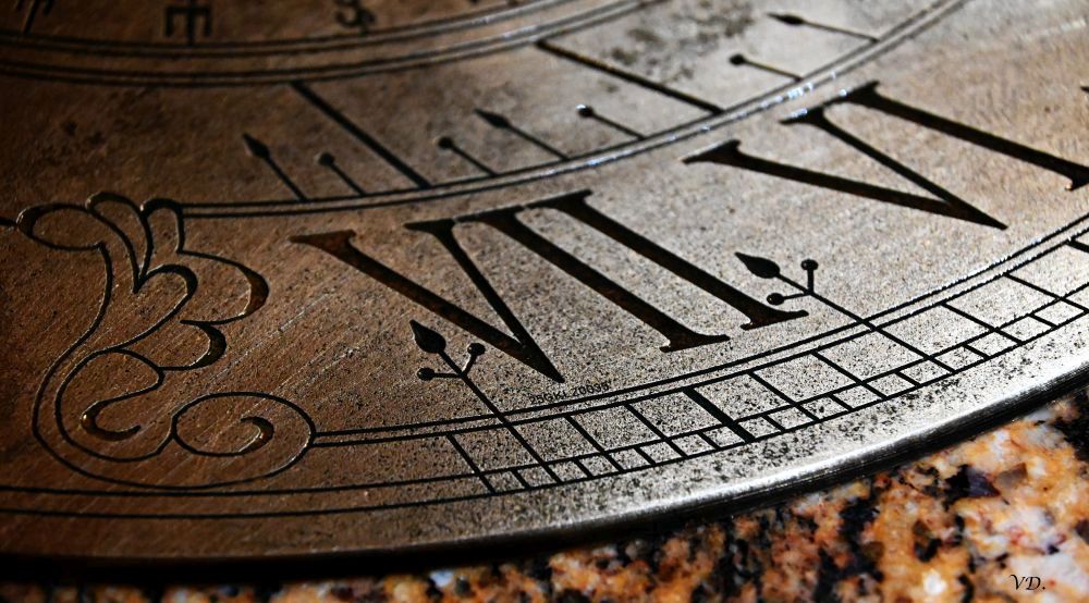 Napóra: horizontális, 290 mm átmérőjű, helyi időt mutat. Számlapja: V-XII-VII, félórás kiosztással. Anyaga: bronz és sárgaréz (antikolt).